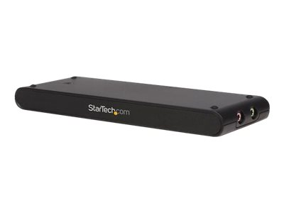 Le modèle USBVGADOCK2 est un ensemble incluant un adaptateur USB VGA et une station d'accueil 4-en-1 permettant de convertir un port USB 2.0 unique en plusieurs ports de connexion, incluant: in port VGA, une connexion réseau 10/100 RJ45, des ports audio double (phono 3,5mm) et quatre ports USB 2.0 supplémentaires. Compatible avec de nombreux systèmes d'exploitation, incluant Microsoft Windows 7, l'adaptateur USB VGA et la station d'accueil prend en charge les résolutions d'écran 1600x1200 (32-bit) des moniteurs VGA connectés et supprime la contrainte et la perte de temps d'avoir à déconnecter des appareils tels que des haut-parleurs et des périphériques USB (scanners, imprimantes, webcams etc.) pour les reconnecter à un autre ordinateur. L'utilisation de cette station d'accueil pratique est aussi simple que créer la connexion hôte USB 2.0 unique pour accéder aux périphériques connectés.