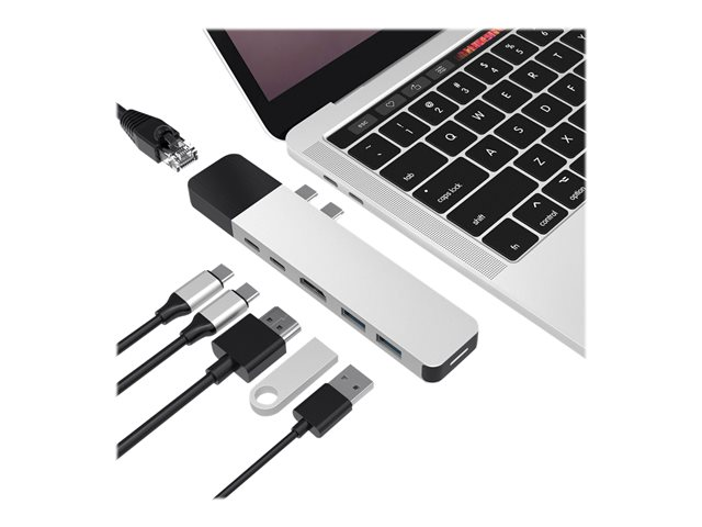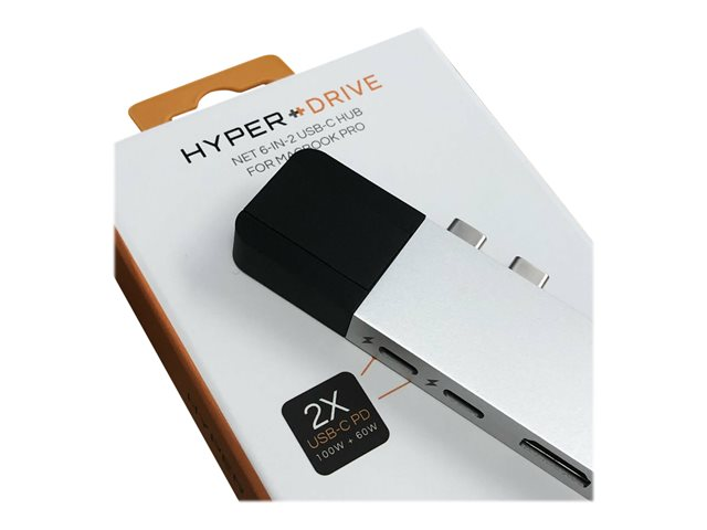 HyperDrive Net 6-in-2 Hub - Station d'accueil - USB-C x 2 - HDMI - 1GbE GN28N-SILVER