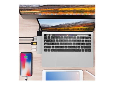 Hub USB-C de forme adaptée pour MacBook Pro et MacBook Air. Ce puissant adaptateur USB-C ajoute 6 ports : adaptateur ethernet gigabit, HDMI 4K, alimentation USB-C de 100 W, et plus encore.