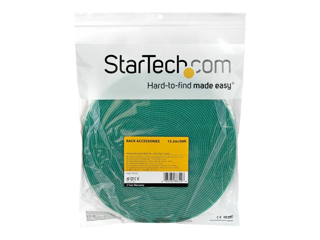 StarTech.com Rouleau de ruban à bouclettes auto-grippantes - 15,2 m - Vert - Gestion des cables - Reutilisable (HKLP50GN) - Fermeture adhésive - 15.24 m - vert - pour P/N: HKLP50, HKLP50BL, HKLP50RD, HKLP50YW