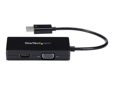 StarTech.com Adaptateur de voyage DisplayPort vers VGA / DVI / HDMI - Convertisseur vidéo DP 3-en-1 - 1920x1200 / 1080p - Noir - Adaptateur vidéo - DisplayPort mâle pour HD-15 (VGA), DVI-D, HDMI femelle - 26.6 m - noir - actif, support 1920 x 1200 (WUXGA)