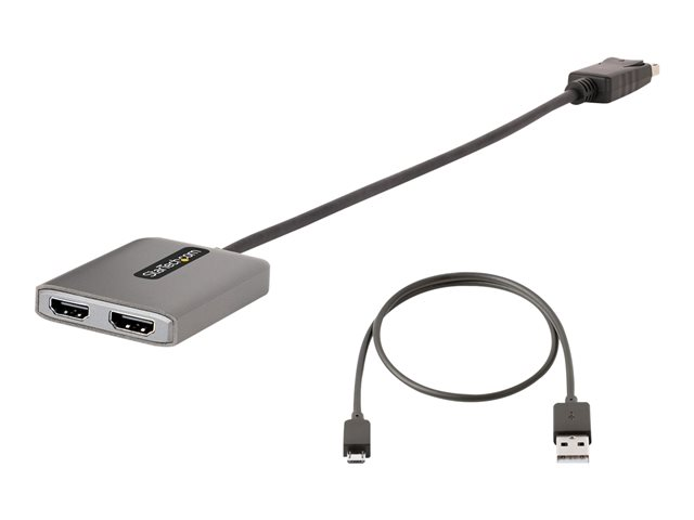StarTech.com DP to Dual HDMI MST HUB, Dual HDMI 4K 60Hz, DisplayPort Multi Monitor Adapter with 1ft (30cm) Cable, DP 1.4 Multi Stream Transport Hub, DSC | HBR3, DP to 2x HDMI Ports - DP to HDMI Splitter (MST14DP122HD) - Adaptateur vidéo - DisplayPort mâle pour HDMI femelle - gris
