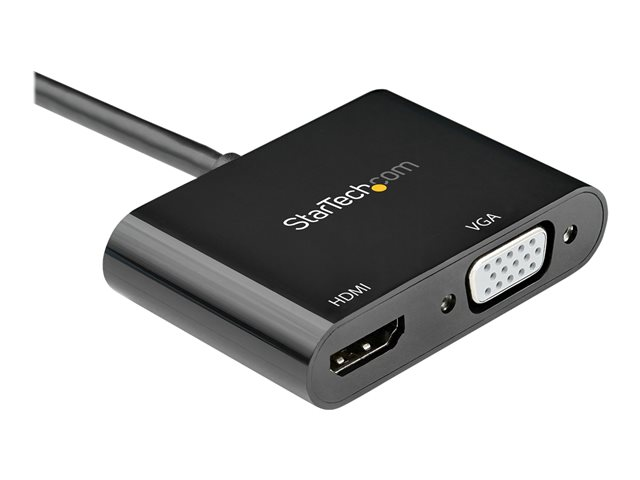StarTech.com DisplayPort to HDMI VGA Adapter, DisplayPort 1.2 HBR2 to HDMI 2.0 (4K 60Hz) or VGA 1080p Converter Dongle, DP to HDMI or VGA Monitor Adapter, Digital Video Display Adapter - Multiport Video Dongle (DP2VGAHD20) - Adaptateur vidéo - DisplayPort mâle pour HD-15 (VGA), HDMI femelle - 23.2 cm - noir - support 4K DP2VGAHD20