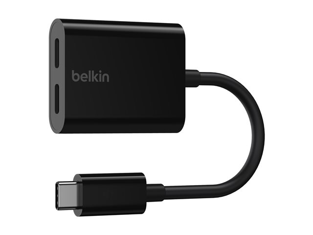 Belkin Connect Audio + Charge - Casque/adaptateur de charge USB-C vers USB-C - 24 pin USB-C mâle pour 24 pin USB-C femelle - 14 m - noir - USB Power Delivery (60W)