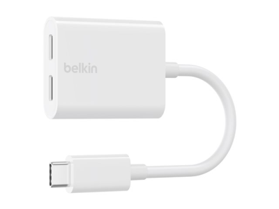 Belkin Connect Audio + Charge - Casque/adaptateur de charge USB-C vers USB-C - 24 pin USB-C mâle pour 24 pin USB-C femelle - 14 m - blanc - USB Power Delivery (60W)
