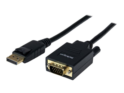 Le câble DisplayPort vers VGA DP2VGAMM6 de 1,8 m (M-M) vous permet de brancher un écran prenant en charge le VGA à une carte vidéo ou source DisplayPort. Le câble fournit une distance de connexion de 1,80 mètre et est doté d'un connecteur VGA mâle et d'un connecteur DisplayPort mâle.