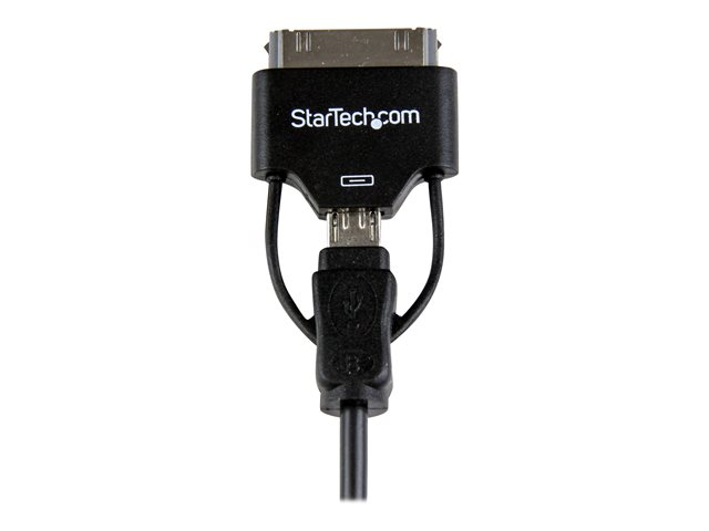 StarTech.com Câble connecteur Apple Dock 30 broches ou Micro USB vers USB 60 cm - Cordon de charge / sync pour iPad iPhone iPod - Blanc - Câble de chargement / de données - USB mâle pour Apple Dock, Micro-USB de type B mâle - 65 cm - noir