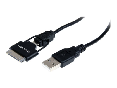 Le câble combiné station d'accueil Apple (30 broches) et Micro USB vers USB USB2UBADC1M (65 cm) constitue une solution simple et fiable pour la connexion des appareils numériques mobiles compatibles Micro USB ou iOS à votre ordinateur afin de les synchroniser ou de les charger.