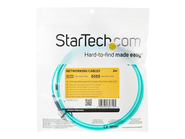 StarTech.com 2m Fiber Optic Cable - 10 Gb Aqua - Multimode Duplex 50/125 - LSZH - LC/LC - OM3 - LC to LC Fiber Patch Cable - Cordon de raccordement - LC multi-mode (M) pour LC multi-mode (M) - 2 m - fibre optique - duplex - 50 / 125 microns - turquoise - pour P/N: J9152AST, MASFP10GBSR, SFP10GBLRMST, SFP10GBSRST, SFP10GSRSST, SFP10GSRXST A50FBLCLC2