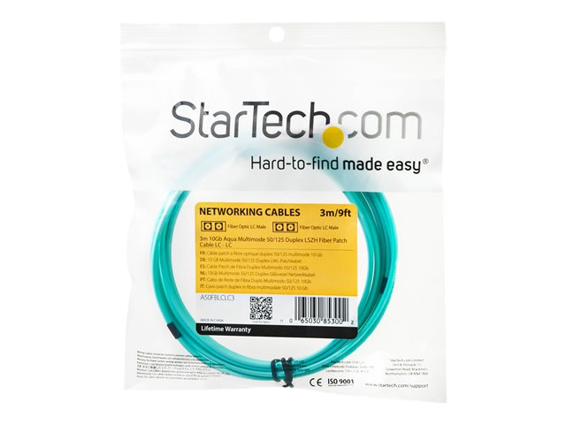 StarTech.com 3m Fiber Optic Cable - 10 Gb Aqua - Multimode Duplex 50/125 - LSZH - LC/LC - OM3 - LC to LC Fiber Patch Cable - Cordon de raccordement - LC multi-mode (M) pour LC multi-mode (M) - 3 m - fibre optique - duplex - 50 / 125 microns - OM3 - sans halogène - turquoise - pour P/N: J9152AST, MASFP10GBSR, SFP10GBLRMST, SFP10GBSRST, SFP10GSRSST, SFP10GSRXST A50FBLCLC3