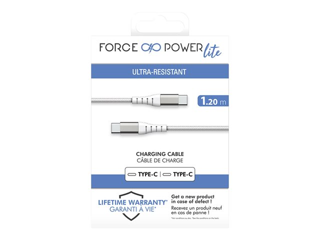 Force Power - Câble USB - 24 pin USB-C (M) pour 24 pin USB-C (M) - 3 A - 1.2 m - blanc FPLICC1M2W