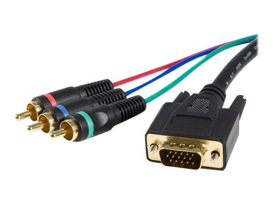 Le câble adaptateur de dérivation HD15 vers RCA composant de 91 cm HD15CPNTMM3 comporte un connecteur VGA (HD15) mâle et des connecteurs vidéo composant mâles, vous permettant de connecter une sortie VGA (carte vidéo, etc.) à un écran/moniteur qui utilise une entrée vidéo composant.
