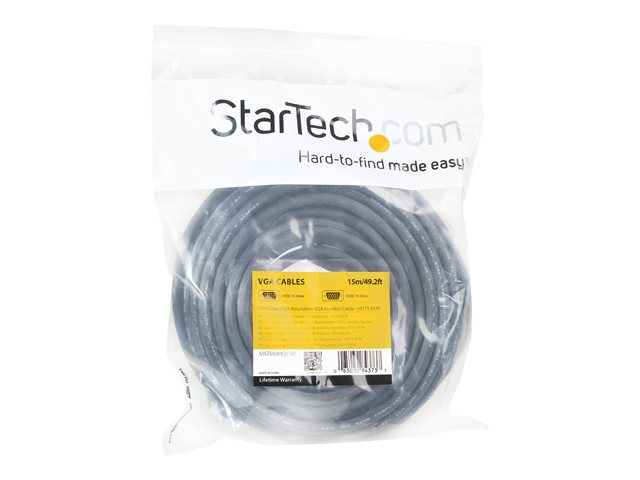 StarTech.com Câble VGA coaxial de 15 m HD15 pour écran haute résolution - M/M - Câble VGA - HD-15 (VGA) (M) pour HD-15 (VGA) (M) - 15 m - moulé - noir
