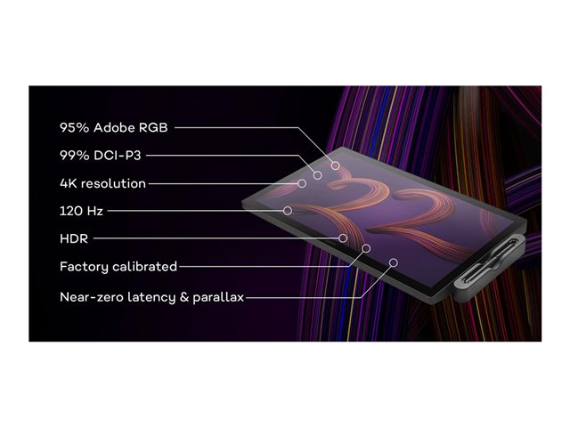 Wacom Cintiq Pro 22 - Numériseur avec Écran LCD - 47.6 x 26.8 cm - multitactile - électromagnétique - 8 boutons - filaire - HDMI, DisplayPort, USB-C DTH227K0B-5Y