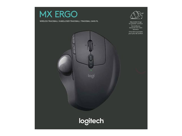 Logitech MX ERGO - Boule de commande - optique - 8 boutons - sans fil - Bluetooth, 2.4 GHz - récepteur sans fil USB