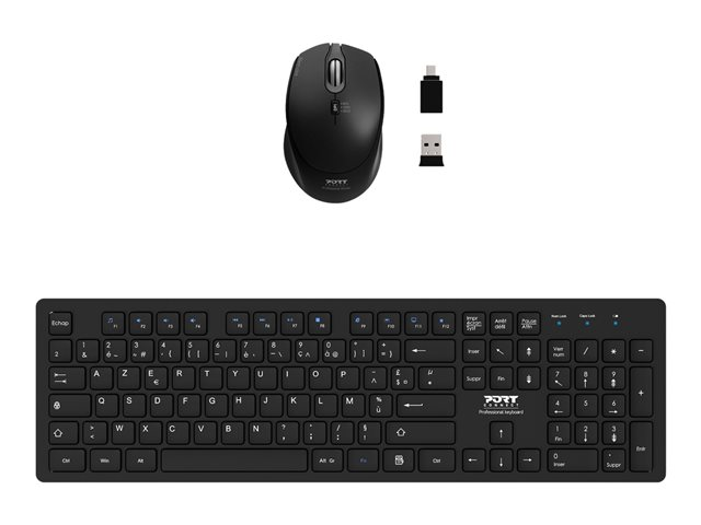 Le pack de bureau professionnel sans fil PORT Connect comprend une souris et un clavier. Sa technologie sans fil 2,4 Ghz offre une liberté de movement jusqu'à 20 mètres. Compatible avec Windows et Mac OS, sa double connectivité USB-A et USB-C la rend universelle. Aucun pilote n'est nécessaire grâce à son installation Plug & Play. La souris sans fil incluse offre un confort d'utilisation optimal grâce à son design ergonomique, ambidextre et léger. de plus, sa vitesse réglable de 800/1200/1600 DPI offre une grande précision. Le clavier inclus est conçu de manière durable et antidérapante avec des lignes rondes et lisses parfaitement adapté pour un environnement de travail. Ses 12 touches de raccourcis multimédia et son pavé numérique intégré permettent une polyvalence accrue.