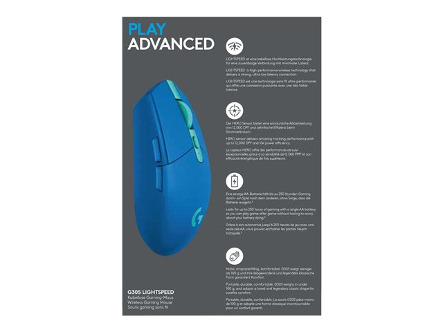 Logitech G G305 - Souris - optique - 6 boutons - sans fil - 2.4 GHz - récepteur sans fil USB - bleu
