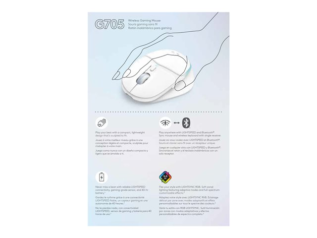 Logitech G G705 - Souris - petites mains - 6 boutons - sans fil - Bluetooth - récepteur USB Logitech LIGHTSPEED - blanc