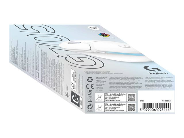Logitech G G705 - Souris - petites mains - 6 boutons - sans fil - Bluetooth - récepteur USB Logitech LIGHTSPEED - blanc 910-006367