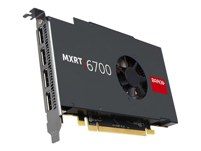 La carte graphique haute performance Barco MXRT-6700 est une solution polyvalente dotée de la puissance et des fonctionnalités nécessaires pour répondre à la plupart des besoins d'imagerie diagnostique. Avec une large mémoire graphique pilotant quatre sorties DisplayPort v1.4, c'est la solution idéale pour les organisations qui cherchent à uniformiser avec une carte sur l'ensemble de leur parc de stations de lecture.