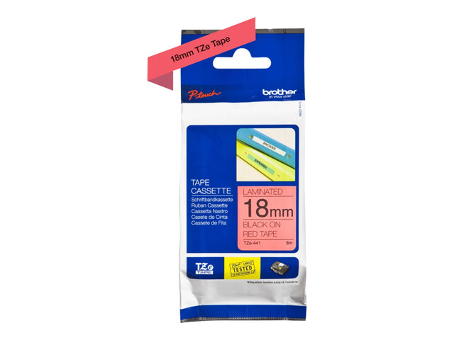 Brother TZe441 - Ruban autocollant laminé - Noir sur rouge - rouleau (1,8 cm x 8 m) 1 rouleau(x) - pour P-Touch PT-18, 3600, D400, D600, E500, H101, H300, H500, P700, P750; P-Touch EDGE PT-P750 TZE-441