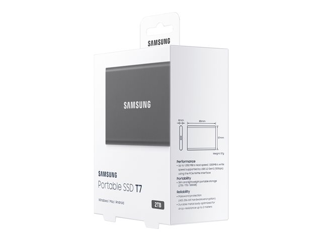Samsung T7 MU-PC2T0T - SSD - chiffré - 2 To - externe (portable) - USB 3.2 Gen 2 (USB-C connecteur) - AES 256 bits - gris titan