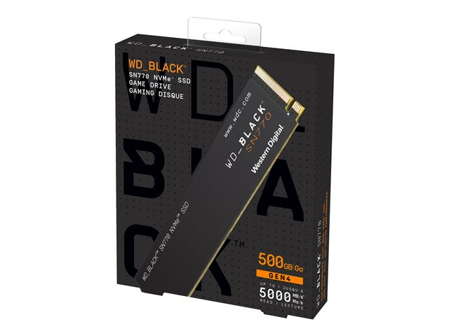 Plongez dans l'action dès maintenant avec le disque WD BLACK SN770 NVMe SSD. Ce disque conçu spécialement pour le gaming est doté d'une interface PCIe Gen 4 offrant des vitesses élevées.