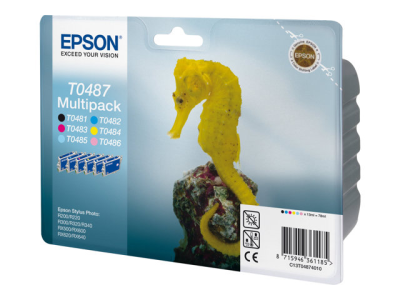 Epson Multipack T0487 - Pack de 6 - 78 ml - noir, jaune, cyan, magenta, magenta clair, cyan clair - original - blister - cartouche d'encre - pour Stylus Photo R200, R220, R300, R300 ME, R300M, R320, R340, RX500, RX600, RX620, RX640