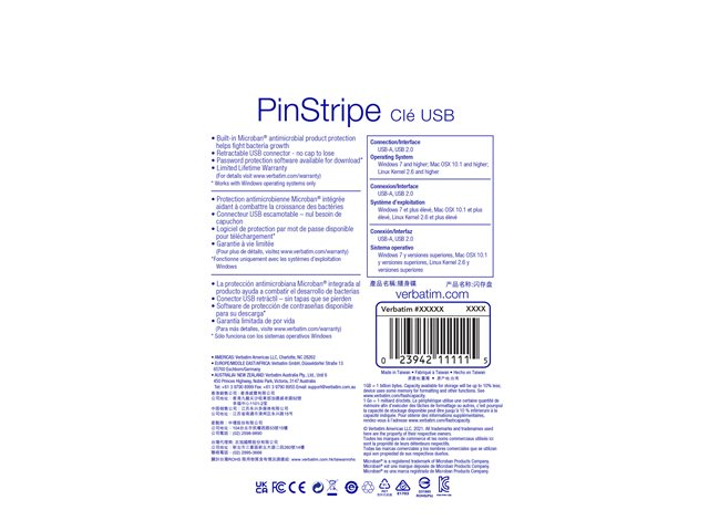 Verbatim PinStripe USB Drive - Clé USB - 64 Go - USB 2.0 - noir