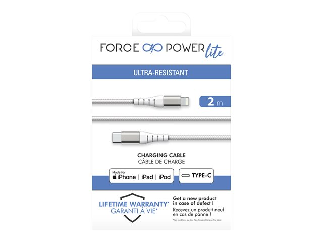 Force Power - Câble Lightning - 24 pin USB-C mâle pour Lightning mâle - 2 m - blanc