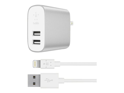 Belkin BOOST CHARGE 2-Port Home Charger - Adaptateur secteur - 24 Watt - 4.8 A - 2 connecteurs de sortie (USB) - sur le câble : Lightning - argent