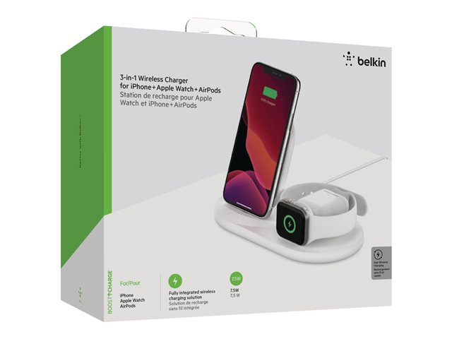 Belkin BOOST CHARGE - Support de chargement sans fil - 7.5 Watt - blanc - pour Apple AirPods; AirPods Pro; iPhone 11, 12, 7, 8, SE, X, XR, XS, XS Max; Watch