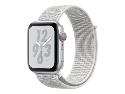 Apple Watch Nike+ Series 4 (GPS) - 44 mm - aluminium argenté - montre intelligente avec boucle Nike sport - nylon tissé - sommet blanc - taille de bande 145-220 mm - 16 Go - Wi-Fi, Bluetooth - 36.7 g