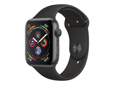 Apple Watch Series 4 (GPS) - 44 mm - espace gris en aluminium - montre intelligente avec bande sport - fluoroélastomère - noir - taille de bande 140-210 mm - 16 Go - Wi-Fi, Bluetooth - 36.7 g