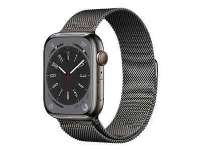 Apple Watch Series 8 (GPS + Cellular) - 45 mm - acier inoxydable graphite - montre intelligente avec boucle milanaise - taille du poignet : 150-200 mm - 32 Go - Wi-Fi, LTE, Bluetooth, UWB - 4G - 51.5 g