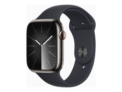 Apple Watch Series 9 (GPS + Cellular) - 45 mm - acier inoxydable graphite - montre intelligente avec bande sport - fluoroélastomère - minuit - taille du bracelet : S/M - 64 Go - Wi-Fi, LTE, UWB, Bluetooth - 4G - 51.5 g MRMV3QF/A