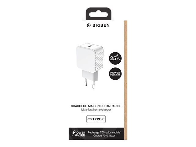 BIGBEN Connected - Adaptateur secteur - 100 % de plastique recyclé - 25 Watt - PD (24 pin USB-C) - blanc