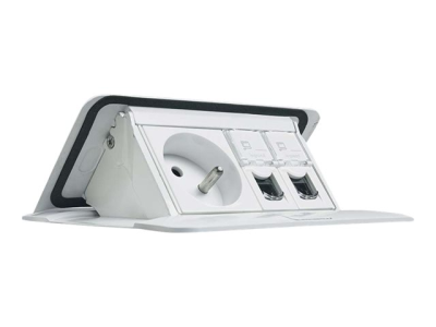 C2G Pop-Up - Coupe-circuit - CA 230 V - 3680 Watt - entrée : alimentation - connecteurs de sortie : 1 (alimentation, 2 x RJ-45) - 2 m - France