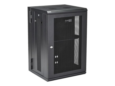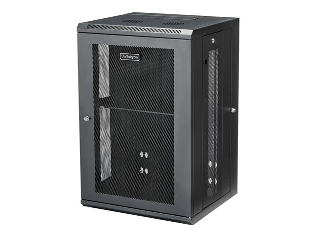 StarTech.com 18U 19" Wall Mount Network Cabinet, 16" Deep Hinged Locking IT Network Switch Depth Enclosure, Assembled Vented Computer Equipment Data Rack with Shelf & Flexible Side Panels - 18U Vented Cabinet (RK1820WALHM) - Armoire de rack - montable sur mur - noir - 18U RK1820WALHM