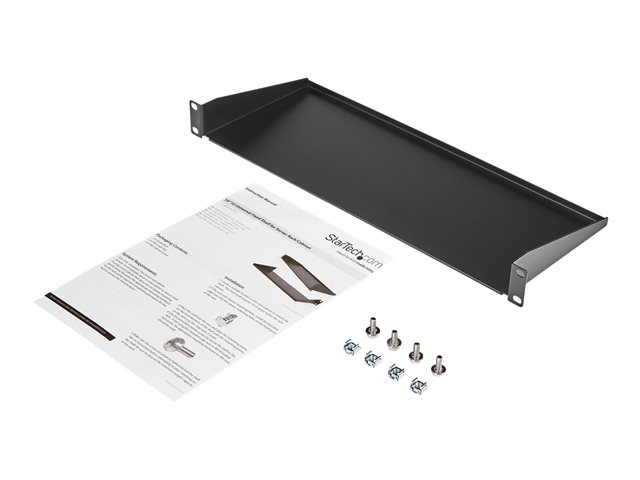 StarTech.com 1U Server Rack Cabinet Shelf, 7in Deep Fixed Cantilever Tray, Rackmount Shelf for 19" AV/Data/Network Equipment Enclosure with Cage Nuts & Screws, 33lbs Weight Capacity - 1U Rack Shelf 7" Deep (CABSHELF1U) - Étagère pour rack - noir - 1U - 19" - pour P/N: RK12OD2, RK2537BKM, RK3236BKF, RK4236BKB, RK4242BK24, RK4242BK30, RKQMCAB12V2 CABSHELF1U