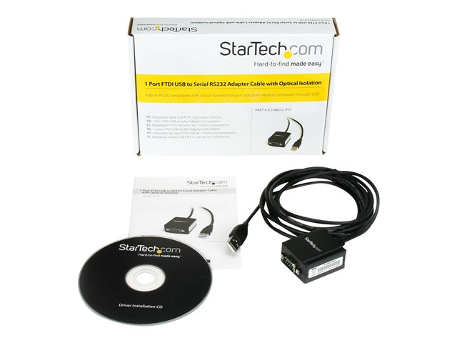 StarTech.com Cable adaptateur FTDI USB vers serie RS232 1 port avec isolation optique - Adaptateur série - USB - RS-232 - noir