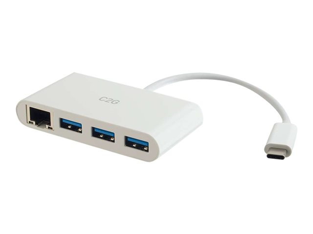 C2G USB C Hub with Ethernet - 3-Port USB Hub - Concentrateur (hub) - 3 x SuperSpeed USB 3.0 + 1 x USB-C + 1 x 1000Base-T - de bureau