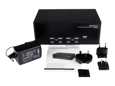 Le commutateur KVM USB DVI trois écrans à 4 ports SV431TDVIUA permet à 4 ordinateurs (comprenant chacun 3 sorties vidéo DVI) de partager des écrans, 1 microphone et 1 jeu de haut-parleurs, 1 clavier et 1 souris, ainsi qu'un périphérique USB 2.0 supplémentaire, comme un disque dur externe, une clé USB, une imprimante ou une webcam.