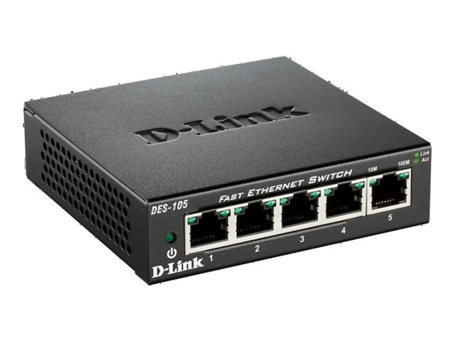 Destinés aux petites et moyennes entreprises, les switches Fast Ethernet DES-105 et DES-108 de D-Link permettent de créer un petit réseau de façon simple, rapide et économique et de relier des ordinateurs, des points d'accès sans fil, des caméras IP, des imprimantes réseau et d'autres périphériques Ethernet sans passer par des opérations de configuration complexes. Équipés, selon le cas, de 5 ou de 8 ports Fast Ethernet avec fonction d'auto-détection permettant de déterminer le débit maximum des périphériques connectés, ils optimisent les performances du réseau. Grâce à l'absence de ventilateur et au robuste boîtier métallique, ces switches parfaitement silencieux sont idéaux pour les bureaux, les bibliothèques ou les salles de réunions, ou encore pour les sites industriels à risques comme les usines et les entrepôts.
