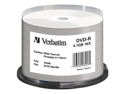 Verbatim - 50 x DVD-R - 4.7 Go 16x - surface imprimable thermique large - spindle 43448